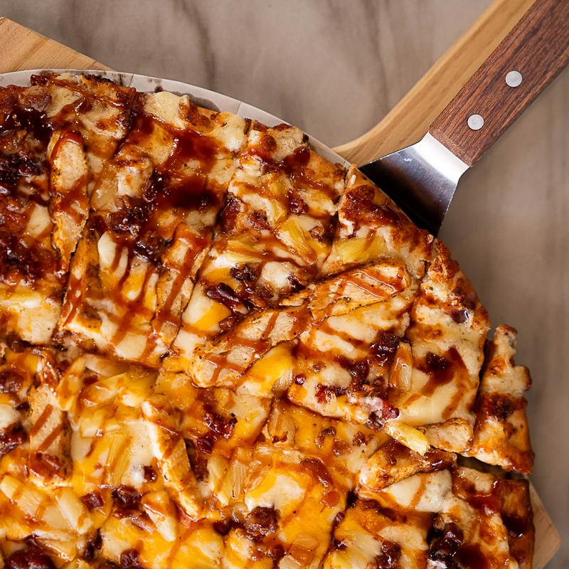 12" $21.95 | 14" $25.95 | 16" $29.95 • Ranch dressing, cheese blend, chicken, bacon, & pineapple drizzled with BBQ sauce.