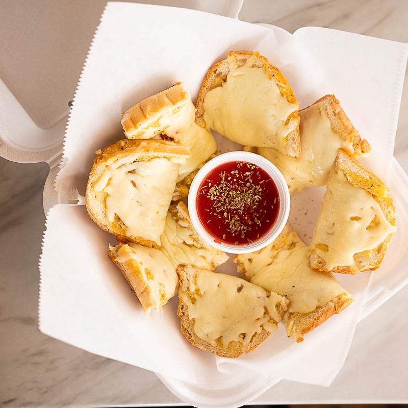 Our house made garlic bread topped with melty cheese. Comes with a side of marinara sauce.