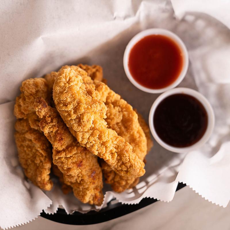 4 Tenders $8.95 | 6 Tenders $12.95 • Choice of sauce included at extra cost. Sauce Options: Buffalo, BBQ, Sweet Chili, Mango Habanero, Garlic Parmesan, Garlic Buffalo