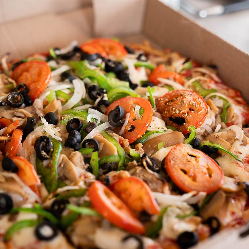 12" $21.95 | 14" $25.95 | 16" $29.95 • Cheese, mushrooms, green peppers, onion, black olives, & tomato.