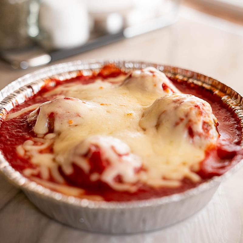 Served with marinara sauce, two meatballs, & topped with cheese.