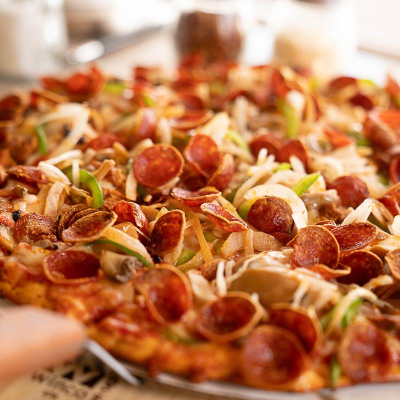 14" $30.45 | 16" $35.95 • Sausage, ham, salami, bacon, mushrooms, green pepper, onion, & pepperoni.